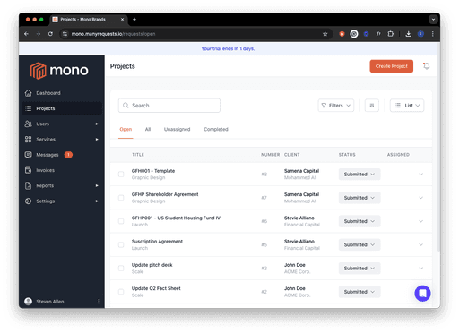 Track all active projects at a glance with our intuitive dashboard, keeping you informed of progress.