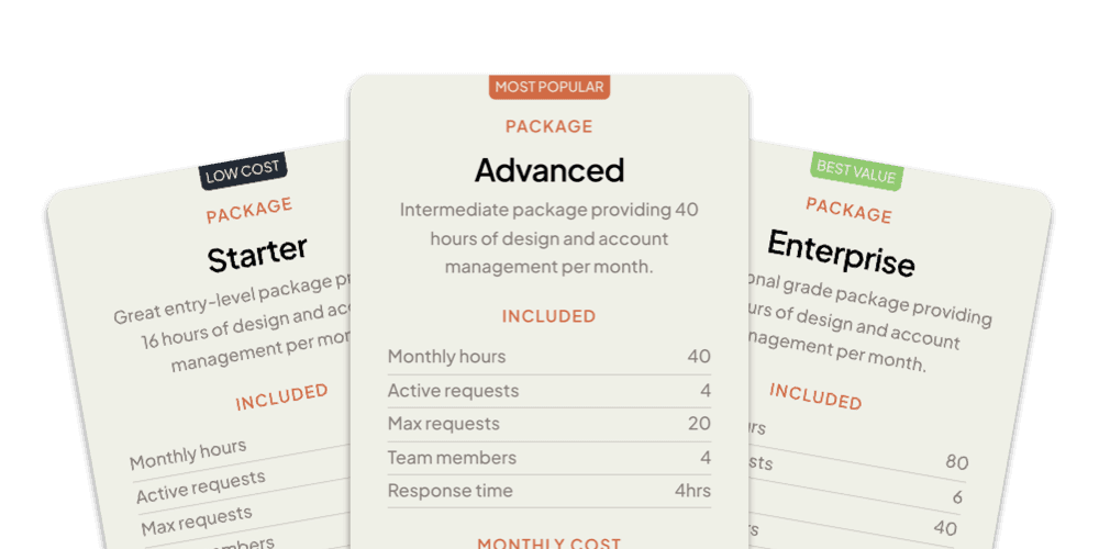 Our cost-effective packages provide dedicated design expertise without the overhead of an in-house team.